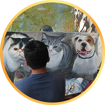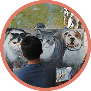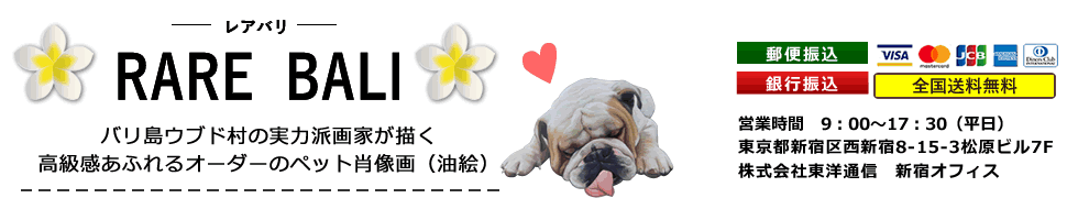 バリ島ウブド村には優れた技術を持つ画家たちが多くいます。彼らは、美術の勉強をし、日々絵を描き続けています。世界で通用する様な画家達が地元ウブド村で観光客やホテル、スパなどから依頼を受け、絵画を描いています。現地に行かないと彼らの絵画を依頼できないなんて、もったいない!という想いから、この度、オーダーメイドでペット肖像画を依頼できるホームページを作りました。