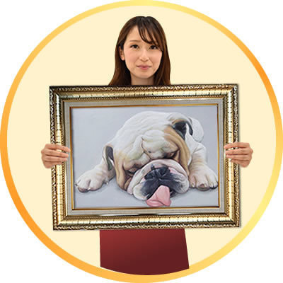 本格的な油絵で、世界に一つだけのオンリーワンなペット肖像画です。高級感のあるペット肖像画は一生の宝物になります。