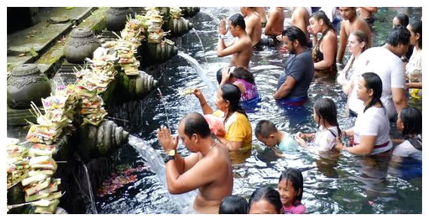 人口320万人以上の人が住む島の約9割はバリ・ヒンドゥー教徒で、島内には約2万ものバリ・ヒンドゥー寺院が存在し、いたるところで祭礼が行われ、神々しい空気に満ち溢れています。